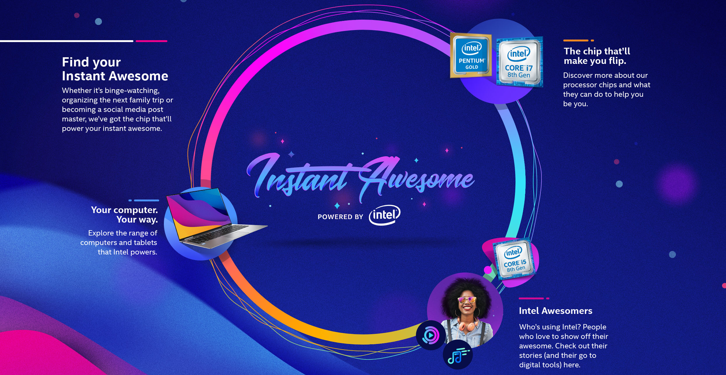 Who's using Intel? People who love to show off their awesome. Whether it's binge-watching, organizing the next family trip or becoming a social media master, we've got the chip that'll power your Instant Awesome.